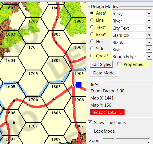 Demo Limitations: The word DEMO is repeatedly drawn on the screen and on the output image file. No features are disabled. The map encoding mode will be created in conjunction with the rule enforcement module at a latter date. Feedback on interface improvements and feature additions along with bug reports would be greatly appreciated.